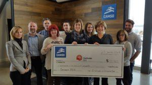 C’est avec beaucoup de fierté que des employés de Camso ont remis à Diane Desrosiers, Coordonnatrice de campagne chez Centraide Estrie, un chèque symbolique de 40 360$. La moitié de ce montant a été recueilli auprès des employés lors de la campagne en milieu de travail; la corporation a doublé les cotisations amassées.