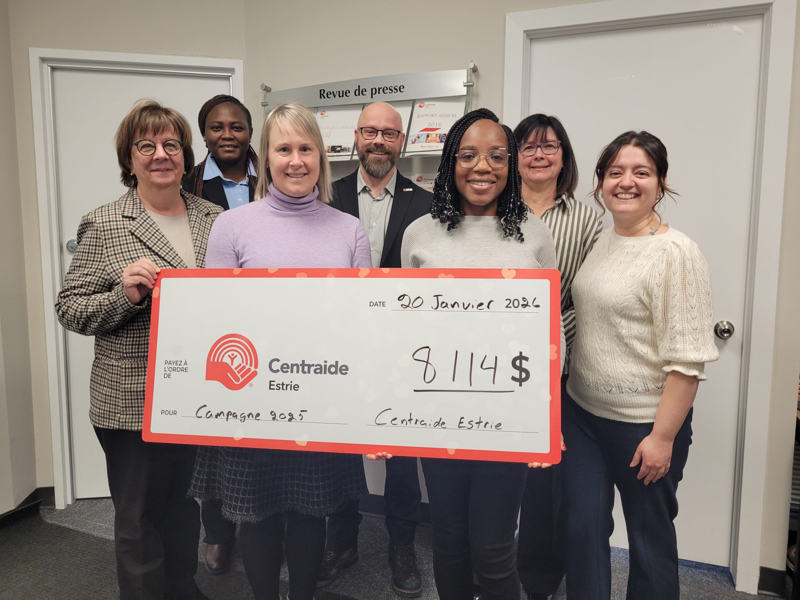 Pour souligner ses 50 ans, Centraide Estrie n’aurait pas pu rêver d’un plus beau cadeau : 8114$ amassés lors de la campagne interne de novembre dernier, soit un montant inégalé et environ 3000$ de plus que l’an dernier. Une réussite collective qui démontre la générosité et la collaboration de notre belle équipe.
